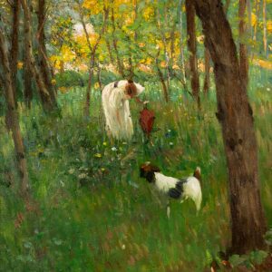Peinte dans la veine impressionniste, cette huile sur toile signée Friedrich Ferdinand Koch restitue l’atmosphère fraîche et lumineuse d’une scène de plein air. 🌳🐕