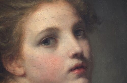 ✨ Assise sur un trône monumental, Cléopâtre est dépeinte dans toute sa majesté. Son port altier, son regard distant et sa situation en surplomb traduisent la souveraineté impérieuse d’une reine dont le pouvoir s’incarne autant dans le raffinement de l’apparat que dans la fermeté du geste. Doré accorda une attention minutieuse aux textures et ornements : le lustre des étoffes brodées, les dorures du mobilier, les symboles hiéroglyphiques, tout concourt à créer une image dense, théâtrale, quasi opératique.