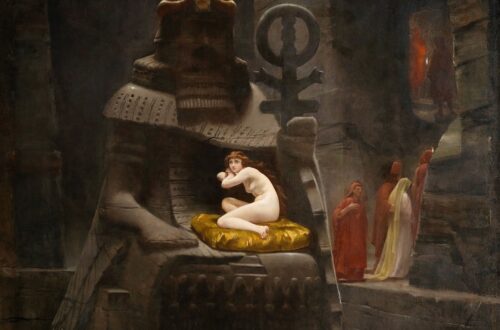 Tête renversée, yeux clos et gorge offerte, ce buste de jeune lascive est la volupté même. À demi dégagée du bloc de marbre, la figure féminine est faite de formes ondoyantes et souples, caractéristiques de l’esthétique Art nouveau. Autre thème cher au mouvement artistique, les fleurs qui ornent ses cheveux ajoutent à l’idée de fusion organique entre la femme et la nature. L’épaisse chevelure et la poitrine semi-dénudée se fondent dans la masse, laissant la figure dans un état intermédiaire entre apparition et matière brute.