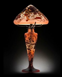 - Lampe Gallé à motif de pampreCoup de cœur pour cette superbe lampe de table des Établissements Gallé qui passera en vente le 5 décembre prochain chez l’étude Tessier & Sarrou. 🍁🍇