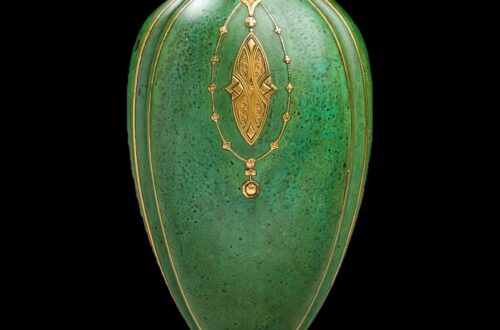 Le piédouche, orné de motifs stylisés dorés, ancre l’objet dans le vocabulaire décoratif de la fin-de-siècle, oscillant entre naturalisme raffiné et ornement symboliste. Objet d’art et témoin d’un âge d’or du verre français, ce vase incarne la sensibilité du vivant propre à l’Art Nouveau, où la nature est interprétée avec lyrisme et maîtrise technique.